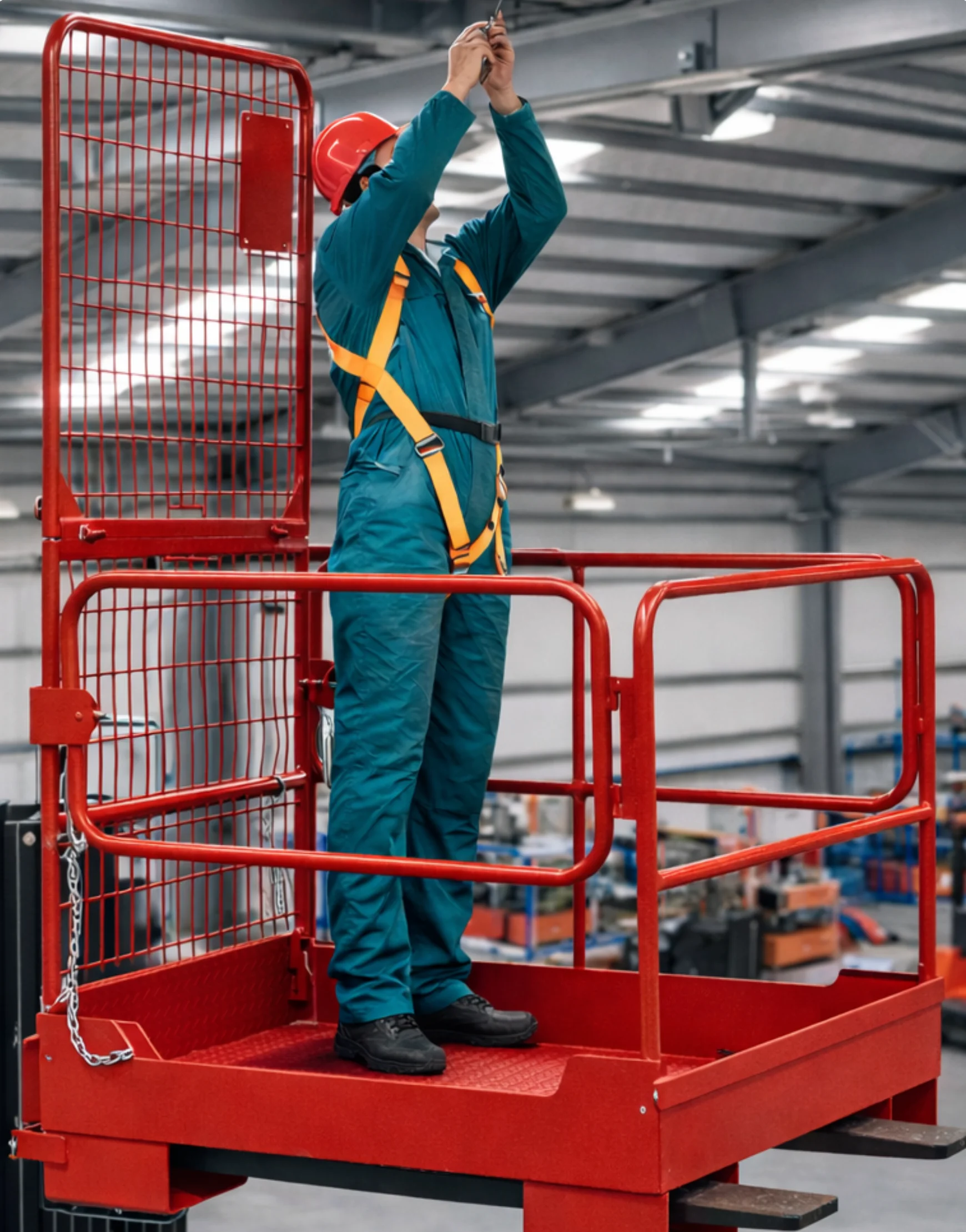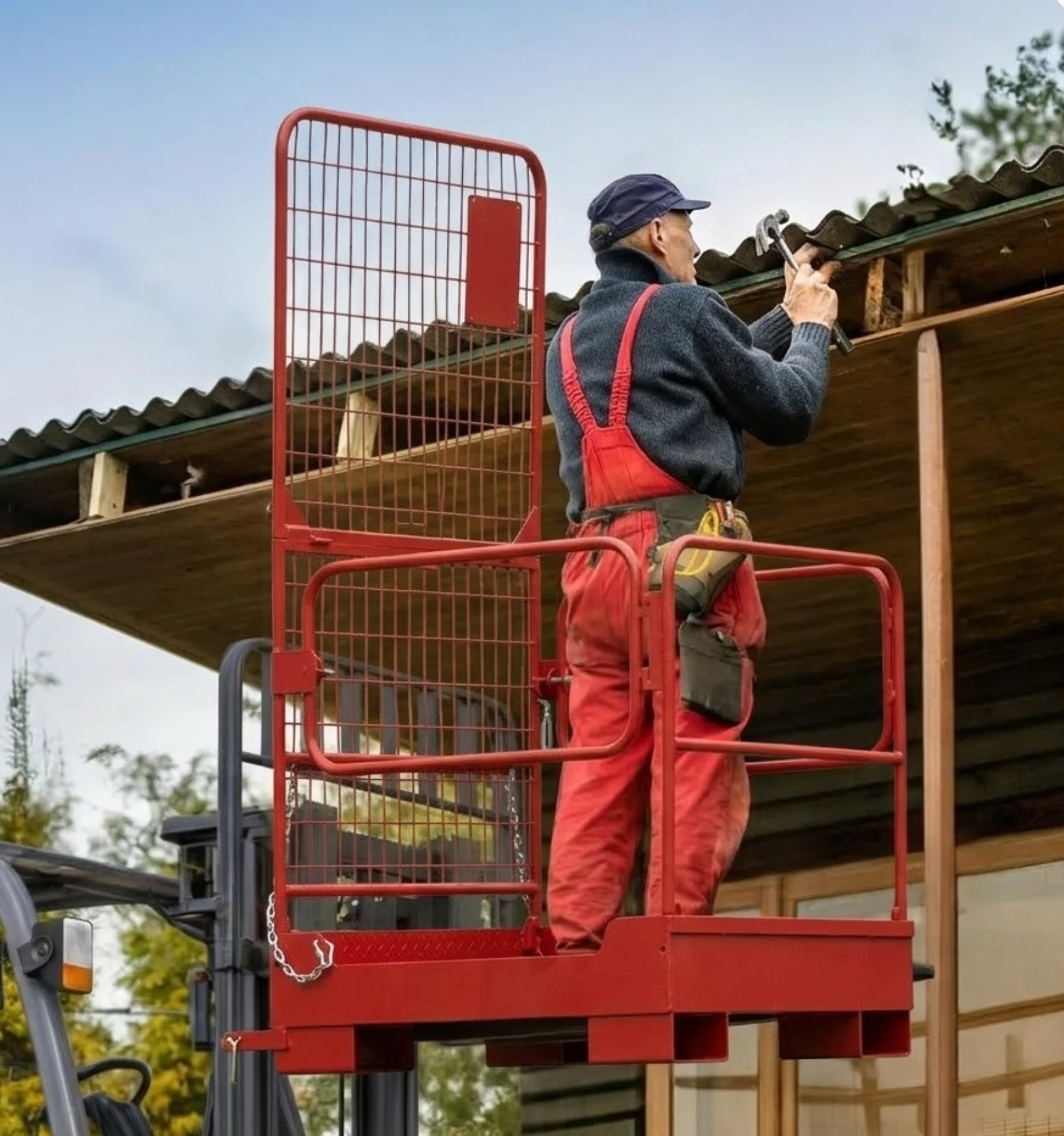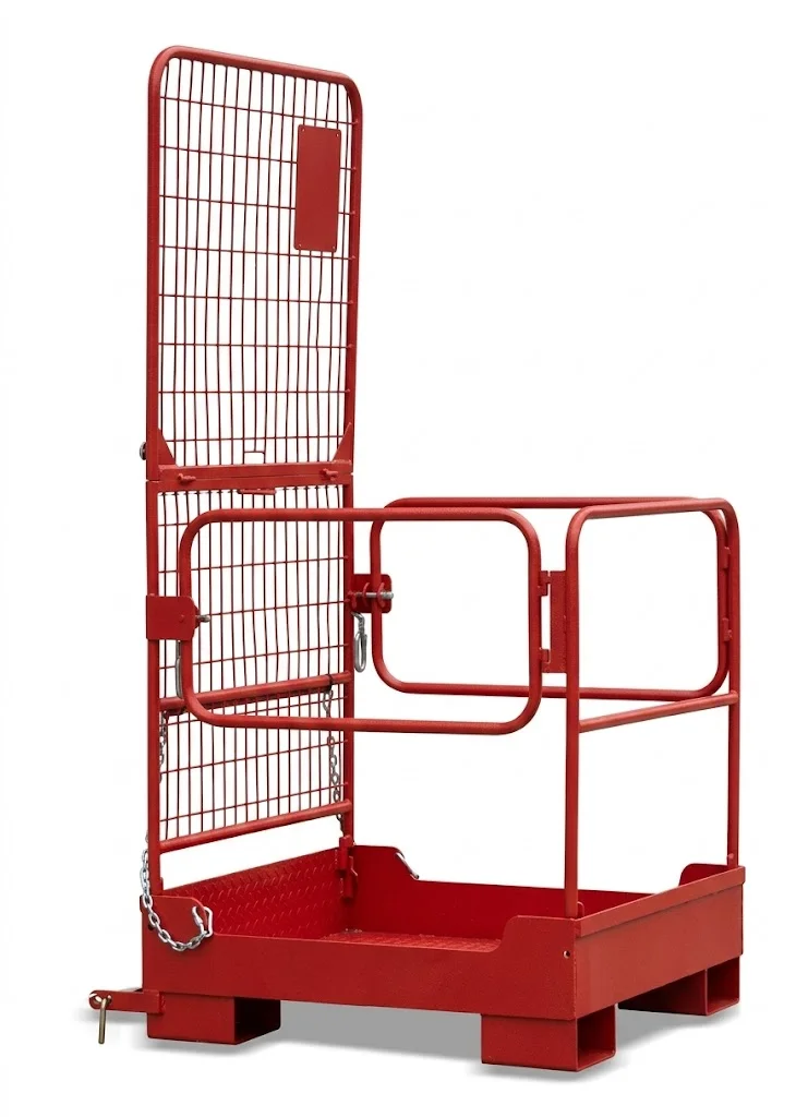 Plataformas o canastas de seguridad para montacargas, ofrecen una superficie de trabajo cómoda y segura para el uso en la industria para operaciones eventuales de mantenimiento, cambios de bombillos etc. Posee sistema de pines para sujeción en en la uña, piso antiresbalante y rodapié para protección de caida de herramienta.