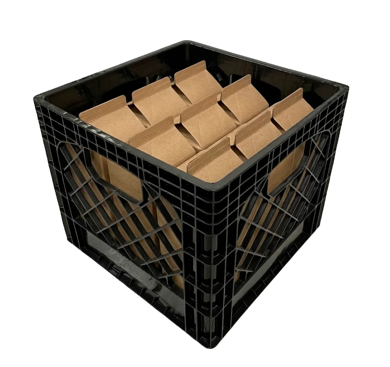 Están diseñadas para la distribución eficiente de productos lácteos líquidos y jugo de frutas desde las instalaciones de procesamiento de lácteos hasta las tiendas de abarrotes, tiendas de conveniencia y tiendas de descuento. Disponibles en las dos huellas estándar exigidas por la industria láctea, estas cajas ofrecen esquinas y fondos excepcionalmente reforzados.